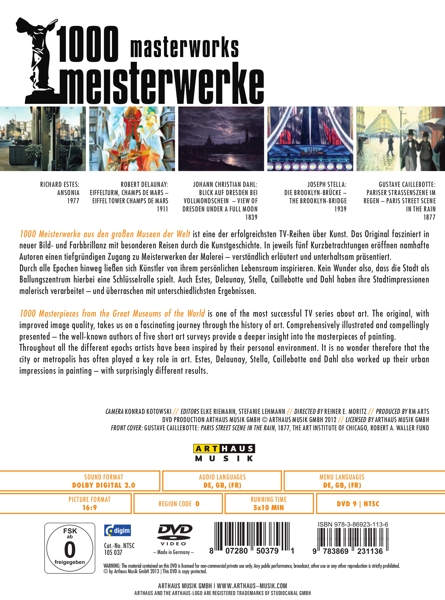 01. "Richard Estes: Ansonia 1977" 02. "Robert Delaunay: Eiffelturm, Champs de Mars, 1911" 03. "Johann Christian Dahl: Blick auf Dresden bei Vollmon, 1899" 04. "Joseph Stella: Die Brooklyn-Brücke, 1939" 05. "Gustave Caillebotte: Pariser Strassenszene im Regen, 1877"