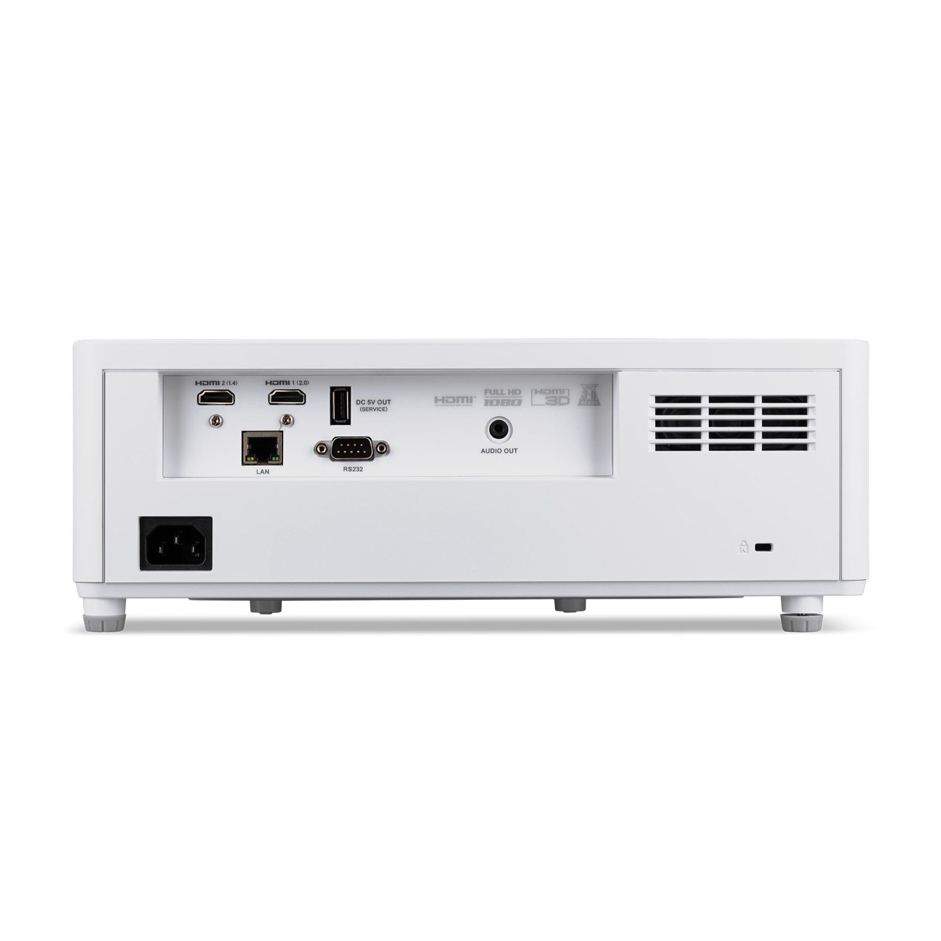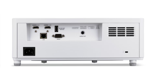 Anschlüsse und Schnittstellen | | Audio (L,R) Out | 1 | | HDMI-Version | 1.4b/2.0 | | Serielle Schnittstelle | RS-232 | | Audioeingang (L, R) | 0 | | Komponenteneingang Video (YPbPr/YCbCr) | 0 | | Composite Video-Eingang | 0 | | Anzahl HDMI-Anschlüsse | 2 | | Anzahl VGA (D-Sub) Anschlüsse | 0 | Betriebsbedingungen | | Betriebstemperatur | 0 - 40 °C | Bildschirm | | Eingebautes Display | Nein | Design | | Slot-Typ Kabelsperre | Kensington | | Kabelsperre-Slot | Ja | | Produktfarbe | Weiß | | Produkttyp | Großraumprojektor | Energie | | AC Eingangsspannung | 100 - 240 V | | Stromverbrauch (Standby) | 0,5 W | | Stromverbrauch (Standardbetrieb) | 245 W | | Energiequelle | AC | Gewicht und Abmessungen | | Höhe | 108 mm | | Tiefe | 265 mm | | Breite | 374 mm | | Gewicht | 4,5 kg | Lichtquelle | | Lebensdauer der Lichtquelle (ökonomischer Modus) | 30000 h | | Lebensdauer der Lichtquelle | 20000 h | | Typ der Lichtquelle | Laser | Merkmale | | Geräuschpegel (Energiesparmodus) | 27 dB | | Geräuschpegel | 33 dB | Multimedia | | Anzahl eingebauter Lautsprecher | 2 | | RMS-Leistung | 30 W | | Eingebaute Lautsprecher | Ja | Netzwerk | | Anzahl Ethernet-LAN-Anschlüsse (RJ-45) | 1 | | Ethernet/LAN | Ja | Objektiv | | Projektionsverhältnis | 1.2 - 2.04 | | Zoomverhältnis | 1.7:1 | | Zoomtyp | Manuell | | Blendenbereich (F-F) | 2,3 - 3 | | Brennweitenbereich | 17.63 - 27.90 mm | | Fokus | Manuell | Projektor | | Vertikale Synchronisation (max) | 120 kHz | | Vertikale Synchronisation (min) | 24 kHz | | Horizontale Synchronisation (max) | 100 kHz | | Horizontale Synchronisation (min) | 15 kHz | | Trapezkorrektur, vertikal | +/- 30 ° | | Trapezkorrektur, horizontal | +/- 30 ° | | Unterstützte Seitenverhältnisse | 4:3 | | Natives Seitenverhältnis | 16:9 | | Kontrastverhältnis | 50000:1 | | native Auflösung des Projektors | 1080p (1920x1080) | | Projektionstechnologie | DLP | | Projektorhelligkeit | 6000 ANSI Lumen | Speichermedium | | Integrierter Kartenleser | Nein | Video | | Full-HD | Ja |