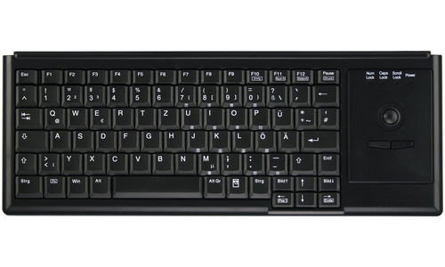 Merkmale | | Plug & Play | Ja | Design | | Hintergrundbeleuchtung | Nein | | Produktfarbe | Schwarz | | Tastatur-Stil | Gerade | | Intelligentes, ergonomisches Design | Ja | | Handgelenkauflage | Nein | | LED-Anzeigen | Ja | Maus | | Maus enthalten | Nein | Tastatur | | Übertragungstechnik | Kabelgebunden | | Geräteschnittstelle | USB | | Tastaturaufbau | QWERTZ | | Tastatursprache | Deutsch | | Eingabegerät | Trackball | | Numerisches Keypad | Nein | | Tastatur - Tastenanzahl | 83 | | Zweck | PC / Server | Energie | | Energiequelle | USB | Gewicht und Abmessungen | | Keyboard Abmessungen (BxTxH) | 370 x 139 x 23,5 mm | | Tastaturgewicht | 700 g | Betriebsbedingungen | | Betriebstemperatur | 0 - 50 °C | | Temperaturbereich bei Lagerung | -20 - 60 °C |