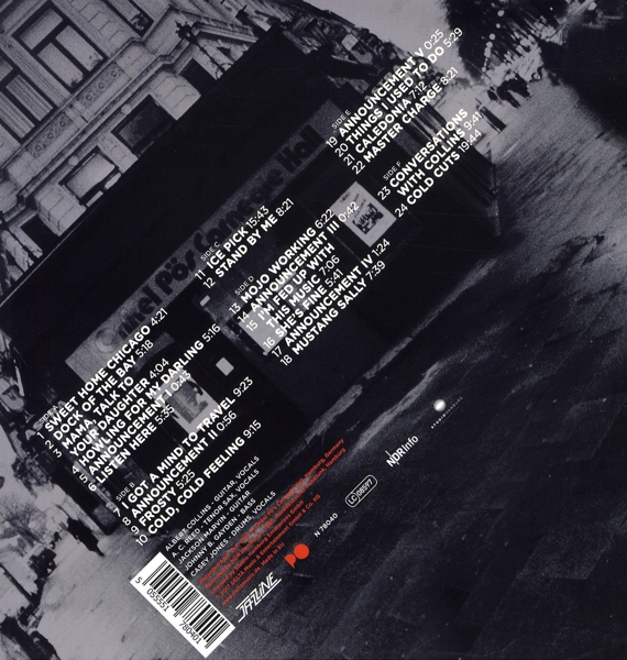 Disc 01 01. "Sweet Home Chicago" 02. "Dock of the bay" 03. "Mama, talk to your daughter" 04. "Howling for my darling" 05. "Announcement I" 06. "Listen Here!" 07. "I Got A Mind To Travel" 08. "Announcement II" 09. "Frosty" 10. "Cold Cold Feeling"