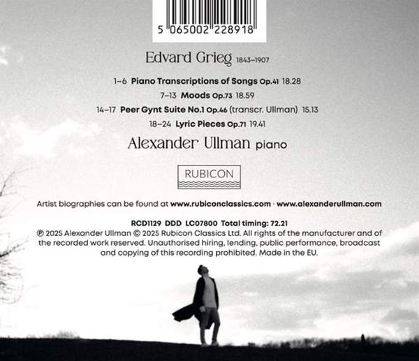 1. LYRIC PIECES BOOK 10, OP. 71 2. PIANO TRANSCRIPTIONS OF SONGS OP. 41 3. MOODS OP.73 4. PEER GYNT SUITE NO.1, OP. 46 (TRANSCRIBED ULLMAN) |