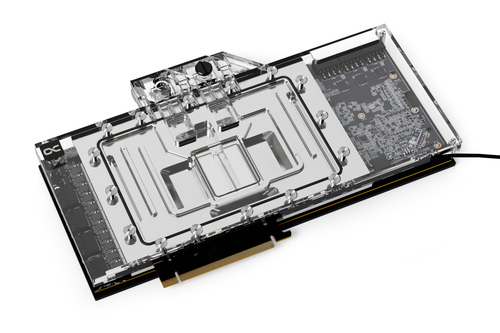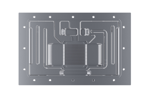 Die beiliegende Rückenplatte wird auf der Rückseite der Platine montiert. Ihre Hauptaufgabe ist die mechanische Verstärkung der Leiterplatte, damit diese durch das Gewicht des Wasserblocks oder durch mechanische Belastung bei Einbau und Transport nicht durchbiegt. Gleichzeitig kann eine Backplate je nach Bestückung mit Wärmeleitpads und Layout der Platine zur Ableitung von Wärme rückseitiger Bauteile beitragen. Zusammen ergeben Wasserblock und Backplate eine mechanisch stabile und thermisch leistungsfähige Einheit, die gerade bei hoher Leistungsaufnahme ihre Stärken ausspielt.