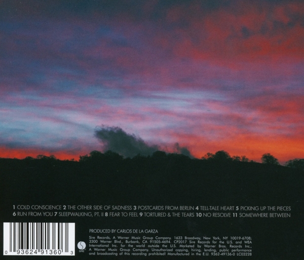 01. "Cold conscience" 02. "The other side of sadness" 03. "Postcards from Berlin" 04. "Tell-tale heart" 05. "Picknick up the pieces" 06. "Run from you" 07. "Sleepwalking [Part 2]" 08. "Fear to feel" 09. "Tortured & the tears" 10. "No resolve" 11. "Somewhere between"
