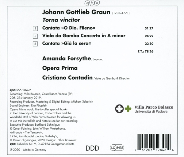 Opera Prima/ Cristiano Contadin / Works By Graun