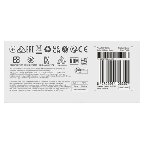 GTR Mini A2174 (Midnight Black) Die Amazfit GTR Mini ist eine leichte Fitness-Smartwatch mit edlem Design und umfassenden Funkti