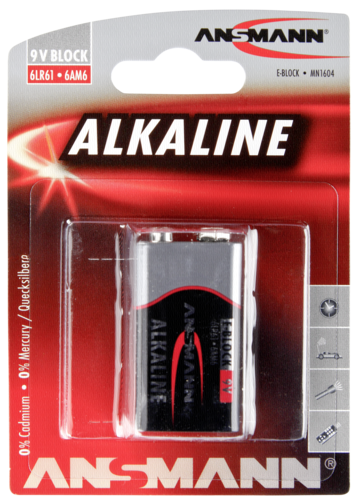Typ(en) | Chemisches System | Alkaline | Typ(en) | Standardbatterie | Bauform | 9V-Block (6LR61) | Eigenschaft(en) | Spannung in V | 9 | Allgemeine Daten | Anzahl (Batterien) | 1 |