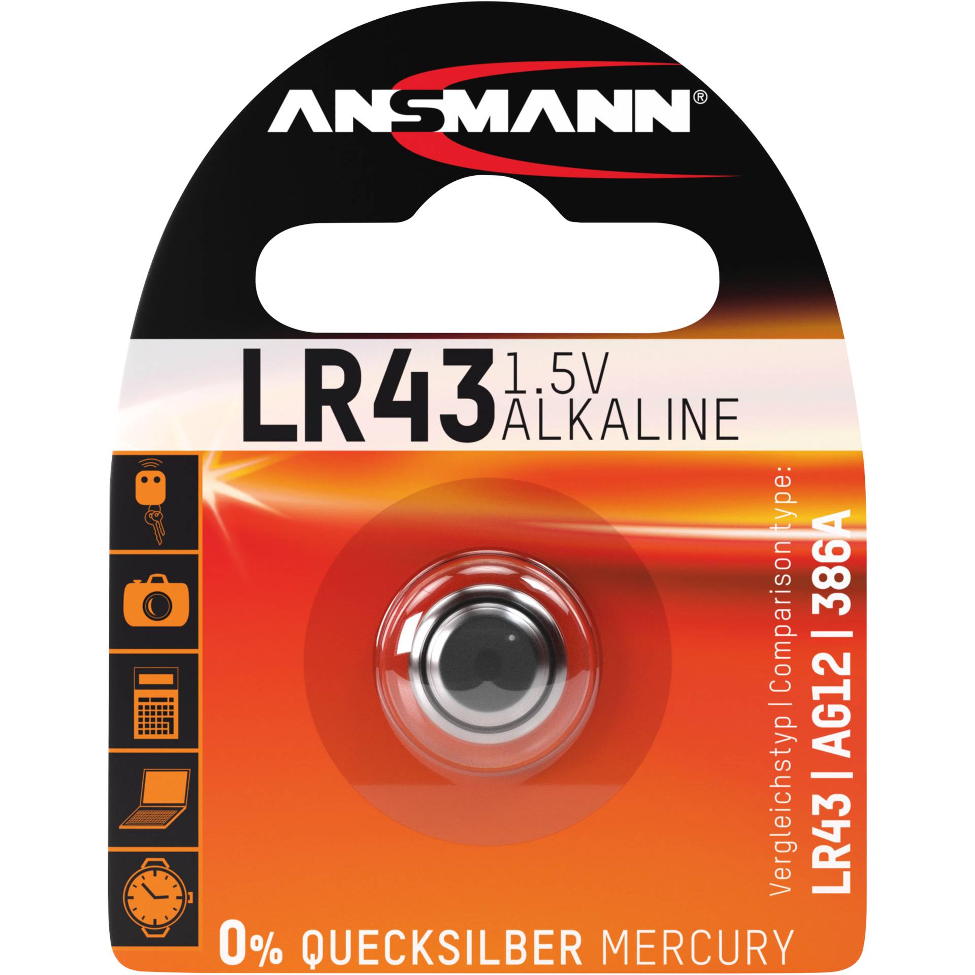 Ansmann Alkaline Battery LR 43. Akku-/Batterietyp: Einwegbatterie, Batterietechnologie: Alkali, Batteriespannung: 1,5 V. Typ: LR 43