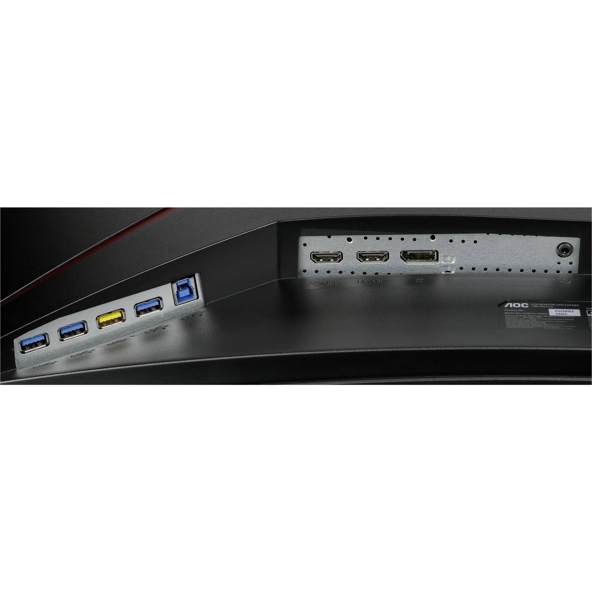 Produkt-Features TFT-Monitore | Feature 1 | energieeffizienz-g | Feature 2 | oberflaeche-matt | Feature 3 | amd-freesync | Feature 4 | hdmi | Feature 5 | usb | Feature 6 | displayport-buchse | Montage | Standfuß | Ja | Wandhalterung | Optional erhältlich | Halterungsstandard VESA (mm) | 100x100 | Ergonomie | Höhenverstellbar | Ja | Neigbar (vor/zurück) | Ja | Drehbar (Pivot-Funktion) | Nein | Schwenkbar (links/rechts) | Ja | Display/Anzeige | Bildschirmdiagonale in cm | 86,4 | Bildschirmgröße (Zoll) | 34 | Max. Auflösung (Pixel) | 3440 x 1440 | Touchscreen | Nein | Kontrastverhältnis | 3000:1 | Oberfläche | Matt | Helligkeit (cd/m²) | 300 | Seitenverhältnis | 21:9 | Sichtwinkel horizontal (°) | 178 | Sichtwinkel vertikal (°) | 178 | Reaktionszeit (ms) | 1 | Pixelabstand (mm) | 0,2745 | Curved Design | Ja | Ausstattung(en) | Energieeffizienzklasse EEK | G | EEP Energieeffizienzpfeil | G | Farbwert | eek--class-g | HDR-fähig | Nein | Auflösung | WQHD (1440p) | Adaptive Synchronisierung | AMD FreeSync | Lautsprecher integriert | Ja | Anschlussarten | Kopfhörer Anschluss | Ja | HDMI 2.0 | 2x | USB-B | 1x USB-B 3.0 | Display/AnzeigePort | 1x Display/AnzeigePort | Angaben zum Energielabel (2017/1369/EU) | Marke | AOC | Modellkennung | CU34G2/BK | Energieeffizienzklasse von A (höchste Effizienz) bis G (niedrigste Effizienz) | G | Leistungsaufnahme im Ein-Zustand (kWh/1000h) | 39 | Energieeffizienzklasse im HDR-Modus von A (höchste Effizienz) bis G (niedrigste Effizienz) | G | Leistungsaufnahme im Ein-Zustand im HDR-Modus (kWh/1000h) | 41 | Sichtbare Bildschirmdiagonale (cm) | 86 | Sichtbare Bildschirmdiagonale (Zoll) | 34 | Bildschirmauflösung (Pixel) | 3440 x 1440 | Allgemeine Daten | Farbe | schwarz / rot | Breite in cm | 80,83 | Höhe inkl. Standfuß (cm) | 39,82 | Tiefe inkl. Standfuß (cm) | 13,28 | Gewicht inkl. Standfuß (kg) | 8 |
