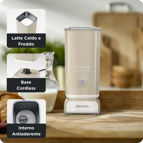 Das Produkt "Vintage Milchaufschäumer, beige" von Ariete hat eine Höhe von 220 mm, eine Tiefe von 95 mm und eine Breite von 95 mm und hat die Farbe Beige. Es handelt sich bei dem Artikel um eine(n) Automatische Milchaufschäumer. Das Produkt hat ein Gewicht von 870 g.