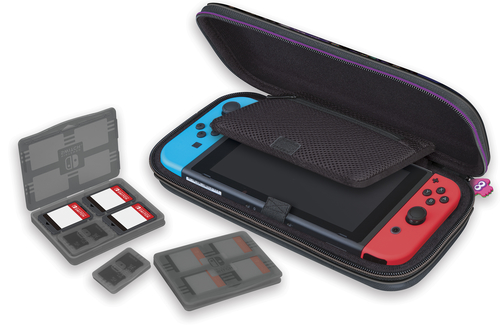 DELUXE TRAVEL CASE SPLATOON 2 Schützt Ihren Nintendo SwitchTM Gepolsterte Tasche mit Abtrennung zum Schutz des Displays und Netzfach zum Verstauen der Spiele 2 Boxen um die Spiele zu verstauen --Die beiden Boxen bieten Platz für jeweils 4 Nintendo SwitchTM Spiele 2 Boxen um Micro SD Karten zu verstauen --Die beiden Boxen bieten Platz für jeweils 2 Micro SD Karten und passen perfekt in die Box zum Verstauen der Spiele