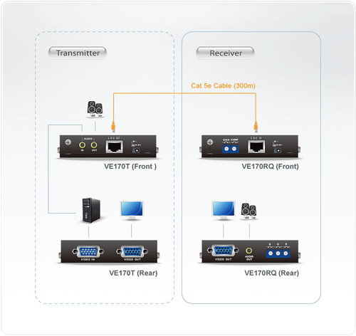 VanCryst VE170 Cat 5 Audio/Video Extender Transmitter and Receiver Units (VE170-AT-G)