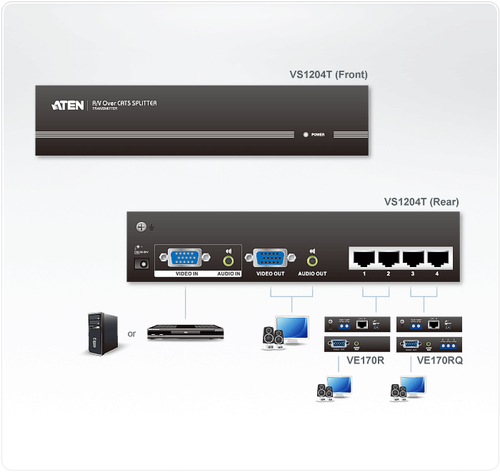 VanCryst VS1204T Cat 5 Audio/ Video Splitter Transmitter Unit (VS1204T) Aten
