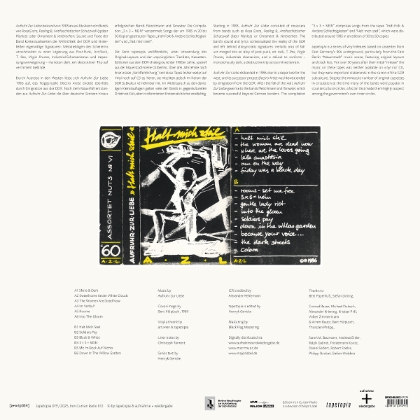 Aufruhr Zur Liebe bestand von 1983 an aus Musikern von Bands wie Rosa Extra, Feeling B, Antifaschistischer Schtzwall (später Planlos) oder Ornament Und Verbrechen. Sound und Texte der Band kontextualisierten die Wirklichkeit der DDR und hinterließen eigenwillige Signaturen: Melodiebögen des Scheiterns verschmolzen zu einer Legierung aus Post-Punk, Art-Rock, T-Rex, Virgin Prunes, Industrial-Schamanismus und Anpassungsverweigerung - monoton dark, ein destruktiver Trip auf vermintem Gelände. Dur...