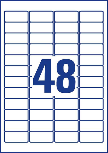 Details: Media Medientyp Polyesteretiketten Mediengrößen 45.7 x 21.2 mm Drucktechnologie Tintenstrahl, Laser Medienfarbe Weiß Anz. Karten/Etiketten pro Blatt/Rolle 48 Qty of Media with Cards 20 Bogen Enthaltene Menge 960 Etikett(en) Merkmale Permanent klebend
