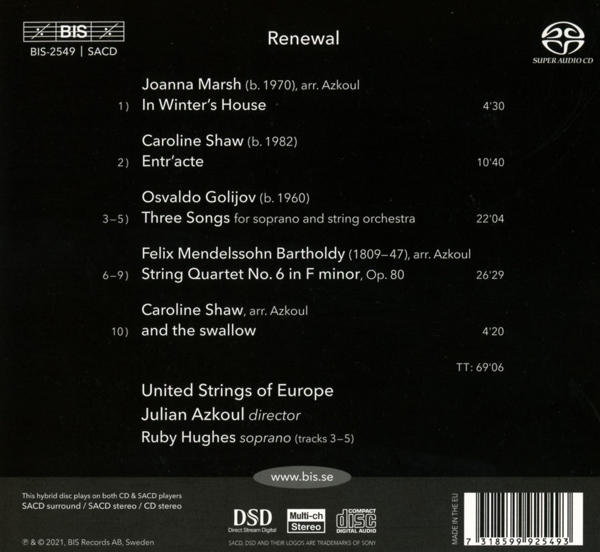 01. Azkoul, Julian "In Winter's house (bearb. von Julian Azkoul)" 02. Azkoul, Julian "Entr'acte" 3 Lieder für Sopran und Streichorchester 03. Hughes, Ruby "Nr. 1 Night of the flying horses" 04. Hughes, Ruby "Nr. 2 L£a descolorida" 05. Hughes, Ruby "Nr. 3 How slow the wind" Streichquartett Nr. 6 f-moll op. 80 (bearb. von Julian Azkoul) 06. Azkoul, Julian "1. Allegro vivace assai - Presto" 07. Azkoul, Julian "2. Allegro assai" 08. Azkoul, Julian "3. Adagio" 09. Azkoul, Julian "4. Finale: Allegro molto" 10. Azkoul, Julian "and the swallow (bearb. von Julian Azkoul)"
