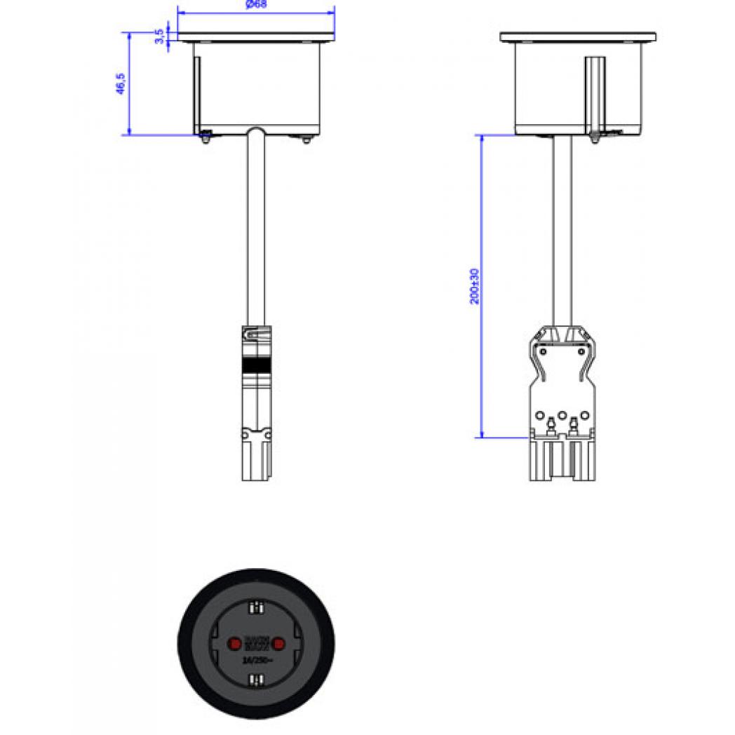 *Auftragsbezogen, nicht Stornierbar*, PIX Steckdose 1xSchutzkontaktsteckdose weiß Farbe weiß, ähnlich RAL 9010 mit erhöhtem Berührungsschutz weißer Zierring montiert, Zuleitung 0,2m H05VV-F 3G1,5mm² weiß mit GST18 Stecker weiß mit POS Verpackung