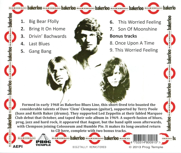 01. "Big Bear Ffolly" 02. "Bring it on home" 03. "Drivin' Bachwards" 04. "Last blues" 05. "Gang bang" 06. "This worried feeling" 07. "Son of moonshine" 08. "Once upon a time" 09. "This worried feeling"