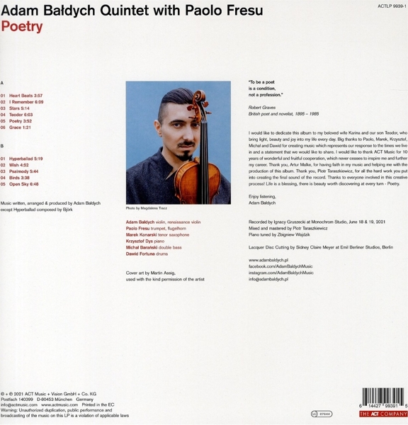 Double Bass: Michael B. Baransky, Drums: Dawid Fortuna, Piano: Krzysztof Dys, Tenor Saxophone: Marek Konarski, Trumpet, Flugelhorn: Paolo Fresu, Violin: Adam Ba?dych, Labelcode AECT9939.1 (ACTLP 9939-1)