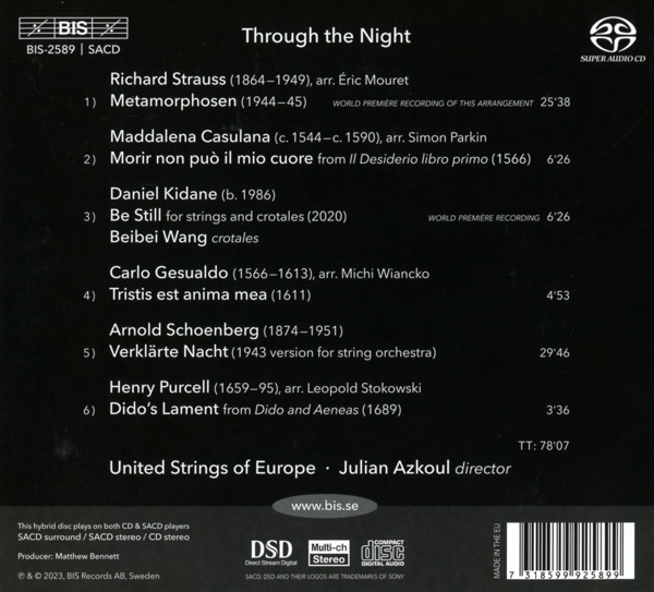01. Azkoul, Julian "Metamorphosen (Studie für 23 Solostreicher) (bearb. von ric Mouret)" 02. Azkoul, Julian "Morir non pu? il mio cuore (Madrigal) (bearb. von Simon Parkin)" 03. Wang, Beibei "Be still (für Streicher und Crotales) (2020)" 04. Azkoul, Julian "Tristis est anima mea (bearb. von Michi Wiancko)" 05. Azkoul, Julian "Verkl?rte Nacht (Fassung für Streichorchester 1943)" Dido and Aeneas Z 626 (Oper in 3 Akten) (Auszug) 06. Azkoul, Julian "Dido's lament (bearb. von Leopold Stokowski)"