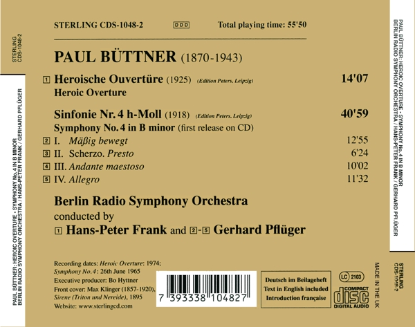 Runningtime: 00:00:00, Conductor: Gerhard Pflüger, Conductor: Hans-Peter Frank, Executive-Producer: Bo Hyttner, Orchestra: Radio-Symphonie-Orchester Berlin, Painting, Cover [Front]: Max Klinger, Labelcode SLG1048.2 (CDS-1048-2)