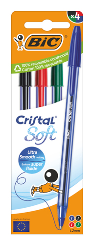 BIC Cristal Soft Schwarz, Blau, Grün, Rot Stick-Kugelschreiber Medium 4 Stück(e) Bic