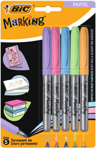 BIC 942865 Permanent-Marker Rundspitze Blau, Grün, Pink, Violett, Gelb 5 Stück(e) Bic