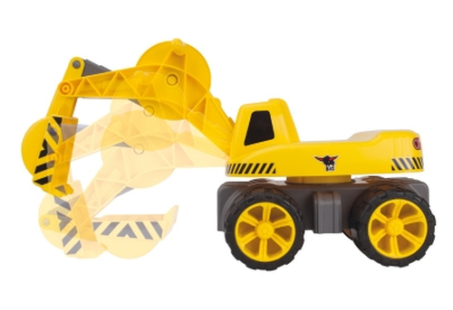 Kinder baggern für ihr Leben gerne und mit dem BIG-Maxi-Digger ist das kinderleicht und macht riesig Spaß! Denn der neue Bagger aus dem Hause BIG gleicht den großen Originalen und verfügt über viele spielstarke Extras. Der Baggerarm des BIG-Maxi-Digger ist voll beweglich. Die Funktion seiner Schaufel entspricht den großen Originalen und ist auf die kindliche Ergonomie und deren Bedürfnisse abgestimmt. Damit die kleinen Arbeiter ab 3 Jahren bei ihren Bauvorhaben bequem sitzen, ist der BIG-Maxi-Digger mit einer großen Sitzfläche ausgestattet. Ein besonderes Extra sind die widerstandsfähigen Softreifen, die jeden Bodenbelag schonen und keine Streifen hinterlassen. Diese sichern nicht nur einen festen Stand in jedem Gelände sondern machen auch das Spielen im Kinderzimmer möglich. Hierzu kann der BIG-Maxi-Digger einfach nach Ende des Spieles im Freien unter fließendem Wasser gereinigt werden und schon kann die Arbeit an großen Baustellen im Kinderzimmer beginnen. Der BIG-Maxi-Digger ist bis zu 50 kg belastbar und wird aus hochwertigen Kunststoffmaterialien in Deutschland gefertigt. Für die hochwertige Verarbeitung und einwandfreie Materialien bürgen zudem die BIG-3-Jahres-Garantie und der BIG-Gütepass. Informationen zur BIG-Garantie finden Sie unter www.garantie.big.de.