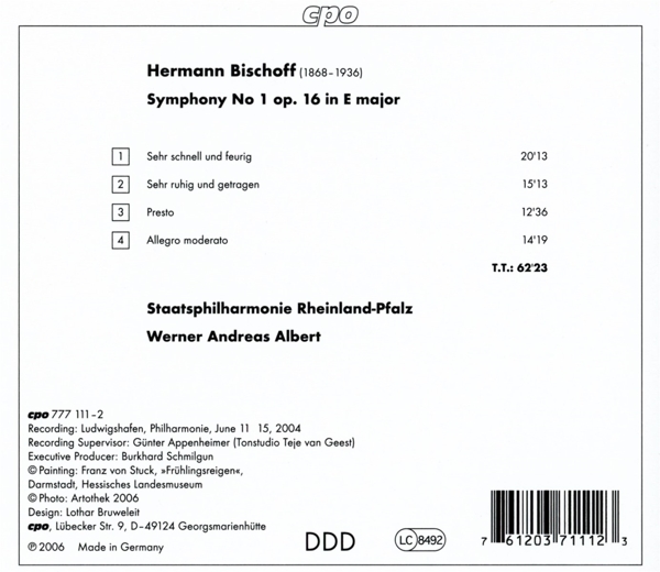 Composed By: Hermann Bischoff, Conductor: Werner Andreas Albert, Executive-Producer: Burkhard Schmilgun, Orchestra: Staatsphilharmonie Rheinland-Pfalz, Recording Supervisor: Günter Appenheimer, Labelcode CPO777111.2 (777 111-2)