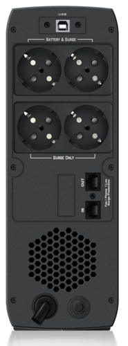 | Allgemeine Daten | | Gewicht in kg | 8,5 | | Tiefe in mm | 288 | | Höhe in mm | 280 | | Breite in mm | 99 | | Farbe | schwarz | | Rackmontage möglich | Nein | | Anschlussarten | | Steckkarteneinschub | Nein | | IEC-Ausgang | Nein | | Schuko-Ausgang | 4x | | D-Sub 9-polig | Nein | | RS-232 | Nein | | Ausstattung(en) | | AVR-Funktion | Ja | | Überspannungsschutz | RJ11/RJ45 (Eingang/Ausgang) | | Notabschaltungsfunktion (EPO) | Nein | | Warnmeldungsanzeige | optisch / akustisch | | Akku | | Max. Überbrückungszeit bei halber Last (Min.) | 7 | | Max. Überbrückungszeit bei Volllast (Min.) | 2,18 | | Anzahl Akkus | 1 | | Stromversorgung | | Nennleistung (VA) | 1000 | | Nennleistung (Watt) | 600 | | Typ(en) | | Typ(en) | Netzinteraktive USV (UPS) |
