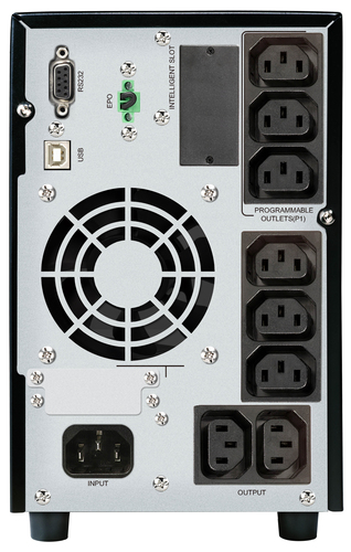 | Allgemeine Daten | | Gewicht in kg | 12,4 | | Tiefe in mm | 397 | | Höhe in mm | 220 | | Breite in mm | 145 | | Farbe | schwarz | | Rackmontage möglich | Nein | | Anschlussarten | | Steckkarteneinschub | Ja | | IEC-Ausgang | 8x | | Schuko-Ausgang | Nein | | D-Sub 9-polig | Ja | | RS-232 | Ja | | Ausstattung(en) | | AVR-Funktion | Ja | | Überspannungsschutz | Ja | | Notabschaltungsfunktion (EPO) | Ja | | Warnmeldungsanzeige | optisch / akustisch | | Akku | | Max. Überbrückungszeit bei halber Last (Min.) | 4 | | Max. Überbrückungszeit bei Volllast (Min.) | 1,5 | | Anzahl Akkus | 2 | | Stromversorgung | | Nennleistung (VA) | 1500 | | Nennleistung (Watt) | 1050 | | Typ(en) | | Typ(en) | Netzinteraktive USV (UPS) |