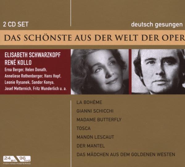 Disc 01 La Boh?me (Oper in 4 Akten) (Auszug) 01. Kraus, Richard "Wie eiskalt ist dies H?ndchen" La Boh?me (Oper in 4 Akten) (Auszug) 02. Berger, Erna "Man nennt mich jetzt Mimi" La Boh?me (Oper in 4 Akten) (Auszug) 03. Berger, Erna "O du süßestes M?dchen" La Boh?me (Oper in 4 Akten) (Auszug) 04. Donath, Helen "Will ich des abends in Paris mich ergehen" La Boh?me (Oper in 4 Akten) (Auszug) 05. Dietrich Fischer-Dieskau Orchester "Lebt wohl, ihr süßen Stunden" La Boh?me (Oper in 4 Akten) (Auszug) 06. De Luca, Liberogsol "In einem Wagen? - Ach, Mimi, du kehrst nicht wieder" La Boh?me (Oper in 4 Akten) (Auszug) 07. Berliner Symphoniker "H?re, du alter Mantel - Ein Philosoph, der Herz hat" La Boh?me (Oper in 4 Akten) (Auszug) 08. Ackermann, Otto "Sind wir allein?" Gianni Schicchi (Oper in 1 Akt) (Auszug) 09. Berliner Symphoniker "V?terchen, teures, h?re" La Fanciulla del West (Das M?dchen aus dem goldenen Westen, Oper in 3 Akten) (Auszug) 10. Berliner Symphoniker "Lasset sie glauben, dass ich in die Welt zog" Madama Butterfly (Madame Butterfly, Oper in 3 Akten) (Auszug) 11. Friedrich, Karl "Im weiten Weltall" Madama Butterfly (Madame Butterfly, Oper in 3 Akten) (Auszug) 12. Berger, Erna "Bald sin wir auf der H?h' - ?ber das Meer und alle Lande" Madama Butterfly (Madame Butterfly, Oper in 3 Akten) (Auszug) 13. Ackermann, Otto "M?dchen, in deinen Augen liegt ein Zauber" Madama Butterfly (Madame Butterfly, Oper in 3 Akten) (Auszug) 14. Schwarzkopf, Elisabeth "Eines Tages seh'n wir" Madama Butterfly (Madame Butterfly, Oper in 3 Akten) (Auszug) 15. Litz, Gisela "Die Kanone im Hafen - Schüttle alle Zweige dieses Kirschbaums" Madama Butterfly (Madame Butterfly, Oper in 3 Akten) (Auszug) 16. Kollo, Ren? "Leb wohl, mein Blütenreich" Madama Butterfly (Madame Butterfly, Oper in 3 Akten) (Auszug) 17. Schr?der, Kurt "Du, du, du kleiner Herrgott - Ehrenvoll sterbe"