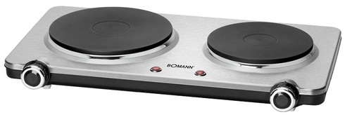 Beschreibung:Edelstahlgehäuse 2 Kochplatten: 1 x Ø ca. 185 mm, 1500 Watt 1 x Ø ca. 155 mm, 1000 Watt 2 stufenlos regelbare Thermostate 2 Kontrollleuchten Inkl. 2 montierbaren Cool Touch-Griffen Hohe Standfestigkeit Hauptmerkmale Design Produktfarbe Schwarz, Edelstahl Geräteplatzierung Arbeitsfläche Kochfeldtyp Versiegelte Platte Art der Oberfläche Edelstahl Anzahl Herdplatten/Kochzonen 2 Zone(n) Anzahl der elektrischen Herdplatten 2 Zone(n) Standard Herdplatte/Kochzone 1000 W Standard Herdplatten-/Kochzonenform Rund Durchmesser Standardherdplatten/-kochzonen 15,5 cm Große Herdplatte/Kochzone 1500 W Große Herdplatten-/Kochzonenform Rund Durchmesser großer Herdplatten/Kochzonen 18,5 cm Leistungen Zertifizierung CE, GS Ergonomie Steuerung Drehregler Steuerungsposition Vorderseite LED-Anzeigen Ja Leistung Anschlusswert (elektrisch) 2500 W AC Eingangsspannung 230 V AC Eingangsfrequenz 50 Hz