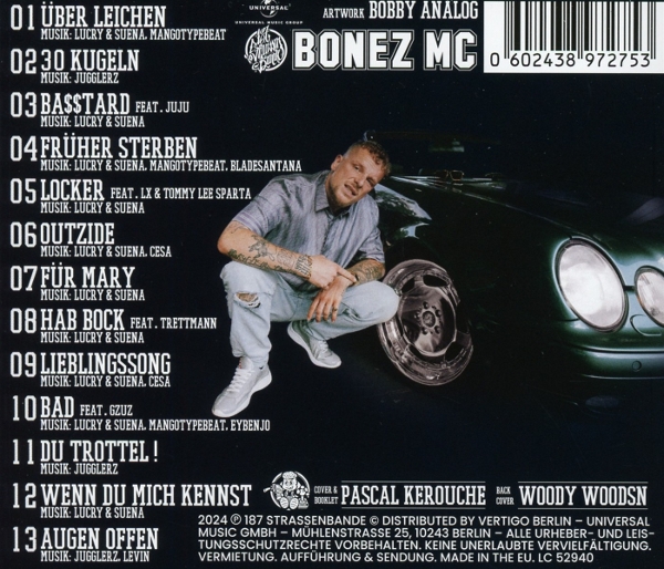 Beschreibung: | Mastered By, Mixed By: Lex Barkey, Producer: Benjo (6), Producer: Bladesantana, Producer: Cesa, Producer: Jugglerz, Producer: Lucry (1), Producer: Mangotypebeat, Producer: Suena, Featuring: JuJu (33), Featuring: LX (7), Featuring: Tommy Lee Sparta, Featuring: Trettmann, Featuring: Gzuz187, Labelcode 3897275 (none, none), Copyright (c) 187 Strassenbande, Phonographic Copyright (p) 187 Strassenbande, Distributed By Vertigo/Capitol |