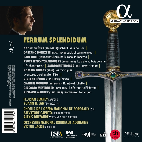 Richard Coeur de Lion (Auszug) 01. Sempey, Florian "O Richard! O mon roi" Lucia di Lammermoor (Oper in 3 Akten) (Auszug) 02. Le Lan, Yoann "Quel air sombre - D'un amour qui me brave" 03. Le Lan, Yoann "A moi viens, ouvre tes ailes" Carmina Burana (Szenisches Spiel) (für Soli, Chor und Orchester) (Auszug) 04. Sempey, Florian "Estuans interius" Dornr?schen op. 66 (Ballett) (Auszug) 05. Sempey, Florian "Finale (1. Akt)" Carmina Burana (Szenisches Spiel) (für Soli, Chor und Orchester) (Auszug) 06. Sempey, Florian "Ego sum abbas" 07. Sempey, Florian "In taberna quando sumus" Hamlet (Oper in 5 Akten) (Auszug) 08. Sempey, Florian "O vin, dissipe la tristesse" Les Mirifiques Aventures du Chevalier d'on (Auszug) 09. Sempey, Florian "De Bourgogne je suis un fruit" Fervaal op. 40 (Oper in 3 Akten) (Auszug) 10. Sempey, Florian "Pr?ludium (3. Akt)" Rom?o et Juliette (Romeo und Julia, Oper in 5 Akten) (Auszug) 11. Sempey, Florian "Mab, la reine des mensonges" Le Pardon de Ploermel (Oper in 3 Akten) (Auszug) 12. Sempey, Florian "O puissante magie" Tannh?user (Oper in 3 Akten) (Auszug) 13. Sempey, Florian "O du mein holder Abendstern" Dornr?schen op. 66 (Ballett) (Auszug) 14. Sempey, Florian "Entracte - 10. Szene (2. Akt)" Hamlet (Oper in 5 Akten) (Auszug) 15. Sempey, Florian "La fatigue alourdit mes pas - Comme une p?le fleur" Die Zauberin (Oper in 4 Akten) (Auszug) 16. Le Lan, Yoann "Finale Szene des Prinzen" Lohengrin (Oper in 3 Akten) (Auszug) 17. Sempey, Florian "Pr?ludium"