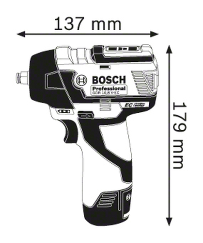 "Akku-Schlagschrauber GDR 12V-115 Professional solo, 12Volt" von Bosch aus der Kategorie Werkzeuge hat eine Höhe von 179 mm, eine Tiefe von 137 mm und eine Breite von 54 mm, ist Blau, hat ein Gewicht von 900 g und besitzt eine Lithium-Ion (Li-Ion) Batterie.