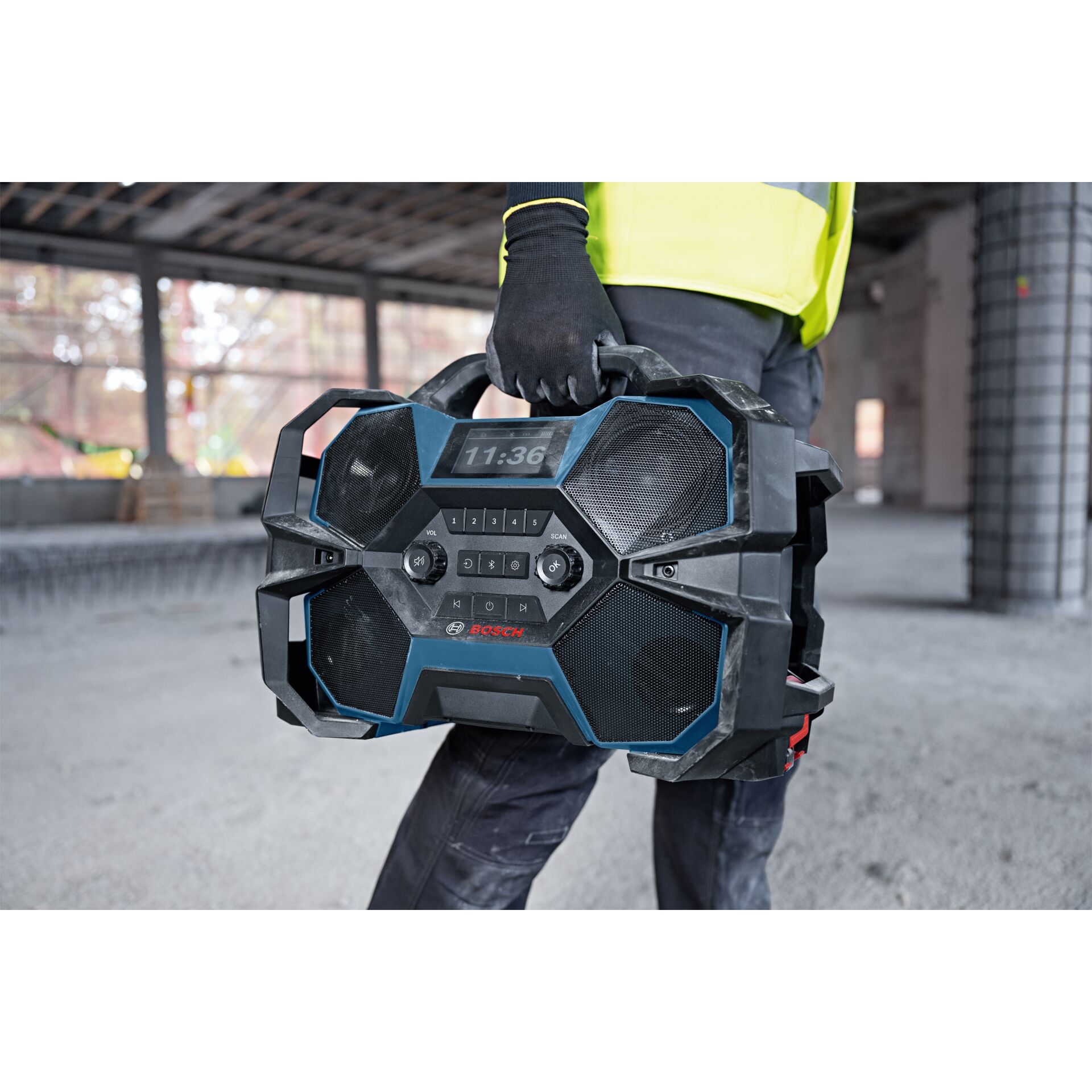 Das GPB 18VH-6 SRC Akku-Baustellenradio von Bosch ist eine robuste und vielseitige Audio-Lösung für anspruchsvolle Baustellenumgebungen. Es wird mit einem leistungsstarken 18V-Akku betrieben und bietet sowohl Bluetooth-Streaming als auch klassischen FM/AM-Empfang ? so haben Sie Ihre Lieblingsmusik oder Nachrichten immer dabei. Das widerstandsfähige Gehäuse ist staub- und spritzwassergeschützt (IP54) und somit optimal für harte Einsatzbedingungen geeignet. Sechs Lautsprecher sorgen gemeinsam mit dem integrierten Subwoofer für kraftvollen Klang mit satten Bässen ? selbst bei hoher Umgebungslautstärke bleibt der Sound klar und dynamisch. Dank verschiedener Anschlussmöglichkeiten wie USB-Ladeports und AUX-Eingang bleiben Ihre Geräte stets geladen und verbunden. Als Teil des nachhaltigen Engagements von Bosch sind die Produkte auf Langlebigkeit ausgelegt sowie energieeffizient konstruiert; zudem werden umweltfreundliche Materialien verwendet ? Ihr Kauf unterstützt verantwortungsbewusste Produktionsprozesse aktiv mit! Mit dem Erwerb eines Produkts dieses weltweit führenden Herstellers setzen Sie ein Zeichen für Innovation, Zuverlässigkeit sowie Umweltverantwortung.