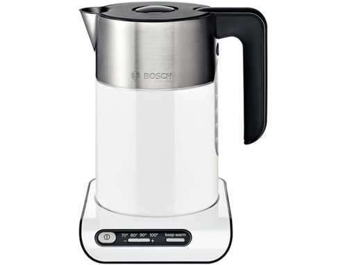 Der Bosch TWK 8611 P ist ein hochwertiger Wasserkocher für moderne Küchen und vereint innovative Technik mit benutzerfreundlichen Funktionen. Mit einem Fassungsvermögen von 1,5 Litern und einer leistungsstarken Heizleistung von 2400 Watt sorgt er für schnelles Aufkochen bei gleichzeitig hoher Energieeffizienz. Vier wählbare Temperaturstufen (70 °C, 80 °C, 90 °C und kochend) ermöglichen die optimale Zubereitung verschiedener Getränke wie Tee oder Kaffee; eine Warmhaltefunktion hält das Wasser bis zu 30 Minuten auf der gewünschten Temperatur ohne erneutes Aufkochen ? energiesparend und praktisch zugleich! Für Sicherheit sorgen dreifacher Schutz durch automatische Abschaltung sowie Überhitzungs- und Trockengehschutz plus Lift-Switch-Off-Funktion beim Abnehmen des Geräts vom Sockel. Das Edelstahl-Innengehäuse gewährleistet Langlebigkeit sowie einfache Reinigung; das doppelwandige Gehäuse bleibt außen angenehm kühl zum Anfassen. Als renommierte deutsche Marke legt Bosch großen Wert auf Nachhaltigkeit: Es werden recycelbare Materialien verwendet und energieeffiziente Designs entwickelt ? so wird der ökologische Fußabdruck reduziert! Mit dem Kauf dieses Produkts leisten Kunden einen Beitrag zum Umweltschutz und profitieren gleichzeitig von höchster Qualität.