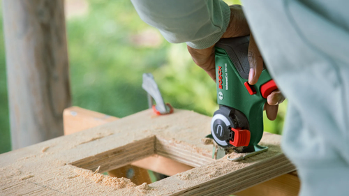 Die Bosch Akku-Säge NanoBlade UniversalCut 18V-65 solo ist eine leistungsstarke und vielseitige Kettensäge für Heimwerker und Profis gleichermaßen. Sie wird mit einem 18 Volt Lithium-Ionen-Akku betrieben (nicht im Lieferumfang enthalten) und verfügt über die innovative NanoBlade-Technologie für besonders vibrationsarmes Sägen ohne aufwändige Wartung der Kette oder Ölen des Sägeblatts. Dank werkzeuglosem SDS-System lassen sich Sägeblätter schnell wechseln; das kompakte Design ermöglicht präzises Arbeiten auch an schwer zugänglichen Stellen bis zu einer Schnitttiefe von 65 mm ? ideal zum Schneiden von Holz oder Kunststoff rund ums Haus und im Garten. Die Säge ist Teil des ?Power for ALL?-Akkusystems von Bosch: Ein Akku passt für viele Geräte aus dem Sortiment! Der Hersteller steht weltweit für Qualität und Innovation sowie nachhaltige Produktion durch energieeffiziente Fertigungsmethoden und recycelbare Verpackungen ? so leisten Käufer einen aktiven Beitrag zum Umweltschutz.