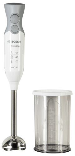 Beschreibung:Mit dem BOSCH Stabmixer MSM 66110 bekommen Sie alles ganz schnell püriert. Er liegt besonders gut und bequem in der Hand, da dieser einen ergonomisch geformten Griff besitzt. Dank der rutschfesten Soft-Touch-Oberfläche kann der Stabmixer Ihnen auch nicht aus der Hand rutschen. Besonders das leichte Gewicht ermöglicht eine Benutzung ohne große Anstrengung. Einmal in der Hand und nie mehr was anderes - der BOSCH Stabmixer MSM 66110 Der Mixfuß des BOSCH Stabmixer MSM 66110, welcher aus hochwertigem Edelstahl besteht, besitzt ein scharfes 4-Klingen-Messer QuattroBlade. Daher kann alles gemixt, püriert oder zerkleinert werden - ganz easy. Da der BOSCH Stabmixer MSM 66110 über einen 600 Watt Motor verfügt, entstehen ganz einfach leckere Shakes und feine Suppen. Auch Kräuter werden sehr leise und vibrationsarm in kleinste Stücke zerhackt. Die zusätzliche Turbo Taste sorgt für maximale Leistung, welche direkt erreicht wird und in Sekundenschnelle ein perfektes Ergebnis vorliegt. Nach dem Gebrauch
