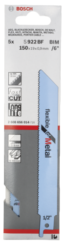 Kurzinfo: Bosch flexible for Metal S 922 BF - Sägeblatt - für Blattmetall, stabile Rohre - 5 Stücke - Länge: 150 mm - Breite: 19 mm Gruppe Elektrowerkzeugzubehör Hersteller Bosch Hersteller Art. Nr. 2608656014 EAN/UPC 3165140093507 Produktbeschreibung: Bosch flexible for Metal S 922 BF - Sägeblatt Produkttyp Sägeblatt - 5 Stücke Geeignet für Blattmetall, stabile Rohre Länge 150 mm Breite 19 mm Zahnteilung 14 (pro" ) Dicke 0.9 mm Ausführliche Details Allgemein Produkttyp Sägeblatt Teile im Set 5 Geeignet für Blattmetall, stabile Rohre Länge 150 mm Breite 19 mm Funktionen Bimetall Sägeblatt Zahnteilung 14 (pro" ) Zahnabstand 1.8 mm Dicke 0.9 mm