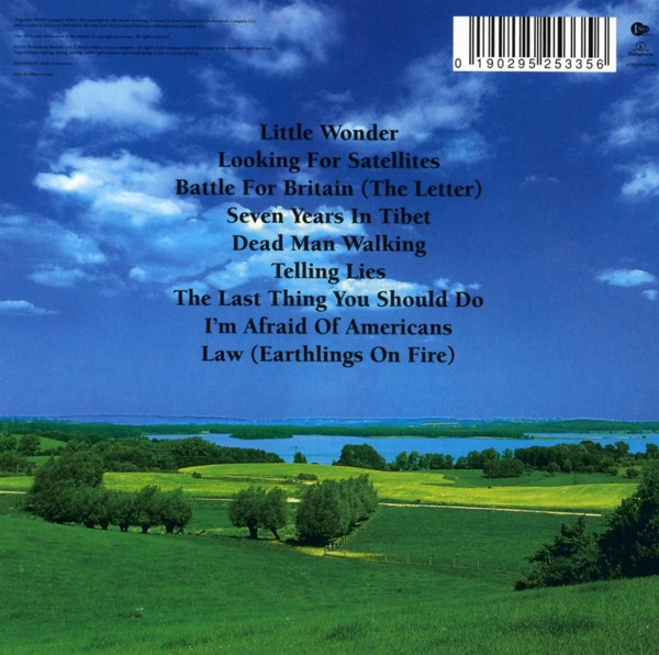 01. "Little wonder" 02. "Looking for satellites" 03. "Battle for Britain (The letter)" 04. "Seven years in Tibet" 05. "Dead man walking" 06. "Telling lies" 07. "The last thing you should do" 08. "I'm afraid of Americans" 09. "Law (Earthlings on fire)"