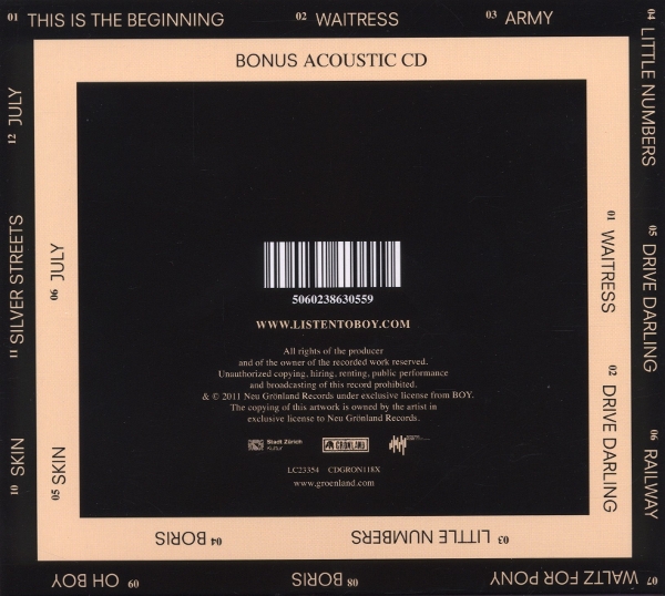 Disc 01 01. "This is the beginning" 02. "Waitress" 03. "Army" 04. "Little numbers" 05. "Drive darling" 06. "Railway" 07. "Waltz for pony" 08. "Boris" 09. "Oh boy" 10. "Skin" 11. "Silver streets" 12. "July"