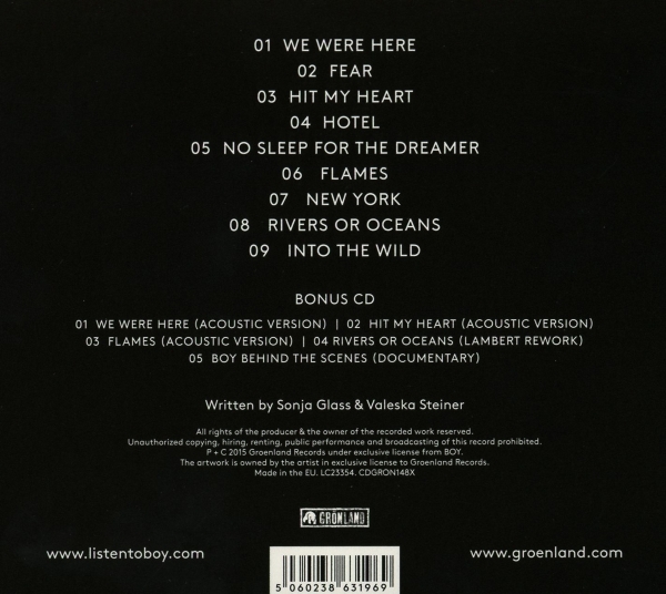 Disc 02 01. "We were here (Acoustic Version)" 02. "Hit my heart (Acoustic Version)" 03. "Flames (Acoustic Version)" 04. "Rivers or oceans (Lambert Rework)" 05. "behind the scenes (Documentary) (Data Track)"