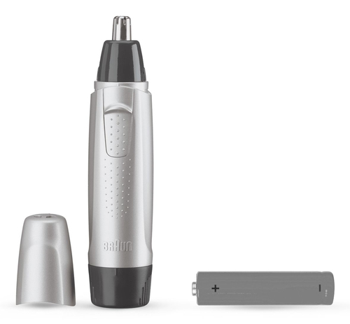 | Allgemeine Daten | | Farbe | silber | | Stromversorgung | | Schneidedauer (Min.) | 60 | | Erforderliche Anzahl Batterien / Akkus | 1 | | Batterietyp/Akkutyp | AA (Mignon) | | Betriebs-Art | Batteriebetrieb | | Typ(en) | | Typ(en) | Nasen-/Ohrhaarschneider |