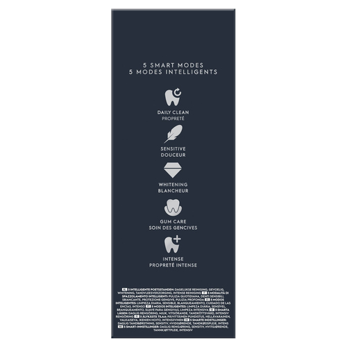 Beschreibung:Hauptmerkmale Merkmale Zweck Erwachsener Zahnbürstentyp Vibrierende Zahnbürste Integrierter Timer Ja Anzahl der Zahnbürsten-Modi 5 Zahnbürsten Modi Tägliche Pflege, Tiefenreinigung, Zahnfleischpflege, Sensibel, für weiße Zähne Produktfarbe Schwarz Mobile App-Unterstützung Ja Timer-Dauer 2 min Intelligenter Drucksensor Ja Kontrolle des Zahnfleischdrucks Ja Handgrifffarbe Schwarz Bürstenform Rund Anzeige zum Bürsten wechseln Ja Anzeige enthalten Ja Bluetooth Ja Leistung Energiequelle Akku Akku-/Batterietyp Integrierte Batterie Batteriebetrieben Ja Ladestation Ja Akku Ja Gewicht und Abmessungen Verpackungsart Box Lieferumfang Anzahl enthaltener Griffe 1 Stück(e) Anzahl enthaltener Bürstenköpfe 2 Stück(e) Reisenkoffer Ja