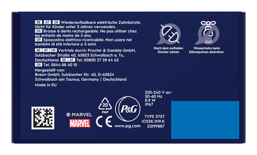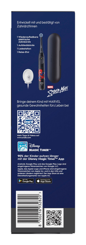 Wer sich für die Oral-B iO Kids 6+ Spiderman entscheidet, fördert nicht nur aktiv die Zahngesundheit seines Kindes durch moderne Technologie und ein kindgerechtes Design, sondern setzt auch auf ein Produkt eines Herstellers, der Wert auf Langlebigkeit und verantwortungsvolle Konstruktion legt. Damit kann der kaufende Kunde im Rahmen seiner Möglichkeiten einen Beitrag leisten: für die Gesundheit des Kindes, für bewusstere Kaufentscheidungen und für den sparsameren Umgang mit Ressourcen durch langlebige Produkte. |  | | Herstellernummer: |