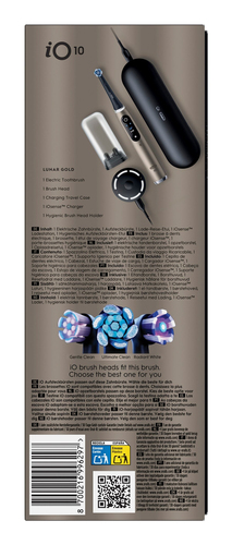 Insgesamt richtet sich die Oral-B iO 10 Lunar Gold von Braun an anspruchsvolle Anwender, die großen Wert auf effiziente Reinigung, schonende Pflege und ein hochwertiges Design legen. Sie unterstützt bei der langfristigen Gesunderhaltung von Zähnen und Zahnfleisch und kann - nicht zuletzt durch ihre Langlebigkeit und die Maßnahmen des Herstellers im Bereich Nachhaltigkeit - Teil einer Entscheidung für mehr Umweltbewusstsein im Alltag sein. Mit dem Kauf investieren Kunden in ihre eigene Zahngesundheit und setzen gleichzeitig ein Zeichen für Qualitätsprodukte, die auf einen längeren Nutzungszeitraum und einen verantwortungsvolleren Umgang mit Ressourcen ausgelegt sind. |  | | Herstellernummer: |