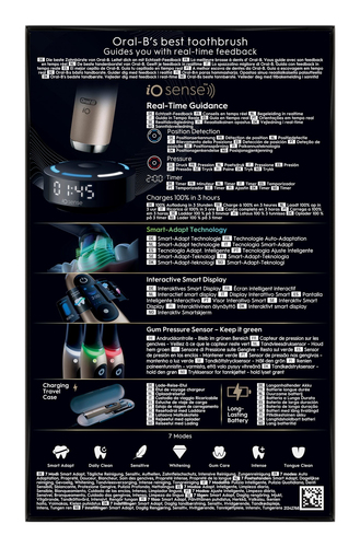 Die iO-Technologie kombiniert typischerweise sanfte Mikro-Vibrationen mit einem runden Bürstenkopf nach Vorbild professioneller Dentalinstrumente. Dadurch wird Plaque effizient entlang des Zahnfleischrandes und in schwer zugänglichen Bereichen entfernt. Je nach konkreter Ausführung verfügen Oral-B-iO-Modelle in der Regel über mehrere Putzprogramme (z. B. für die tägliche Reinigung, für empfindliche Zähne oder für aufhellende Pflege), eine Andruckkontrolle zum Schutz vor zu starkem Druck sowie einen integrierten Timer zur Unterstützung der empfohlenen Putzdauer. Viele Modelle der iO-Reihe bieten außerdem smarte Funktionen und können mit einer App gekoppelt werden, die dem Nutzer Rückmeldung zu seiner Putztechnik gibt und so hilft, die Mundhygiene langfristig zu verbessern.