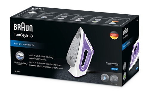 - Du besitzst "Braun TexStyle 3 SI3042VI Dampfbügeleisen Keramik-Bügelsohle 2350 W Violett, Silber, Weiß" oder kennst den Artikel bereits?