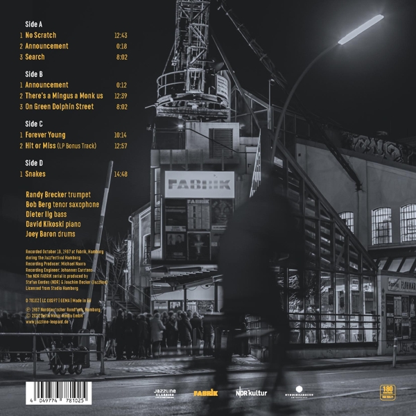 Beschreibung:Viertes Release der neuen "Live At Fabrik Hamburg-Serie auf Jazzline in Kooperation mit dem legendären Venue und NDR Kultur - die Brüder Randy und Michael Brecker, jeweils mit eigener, hochkarätig besetzter Band live im Oktober 1987. Doppel-CD (beide Konzerte) im dreiteiligen Digipack mit 16-seitigem Booklet sowie zwei einzelne Doppel-LP's (Michael / Randy, 180 Gramm, Gatefold). Der 18. Oktober 1987 war ein ganz besonderer Tag für die beiden Brüder Michael und Randy Brecker. Hatten beide jahr...
